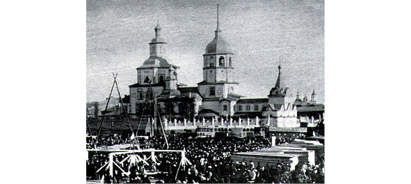 Мы находимся у порога главной площади Иркутска. С 1935 г. она носит имя первого секретаря Ленинградского обкома и несостоявшегося главы Советского союза С. М. Кирова. Однако за долгие годы своего существования, начиная с 1670-х гг. она сменила не менее 12 названий. Дольше всего она была Кремлёвской, Гостинодворской и Тихвинской. Начиная с 1752 г. здесь находилась главная торговая площадка Восточной Сибири – большой Гостиный двор. В 1778 г. на этом месте по проекту итальянского мэтра классицизма Джакомо Кваренги было построено каменное здание для более чем 270 торговых лавок, которое спустя век было уничтожено великим пожаром в Иркутске и до наших дней не сохранилось.