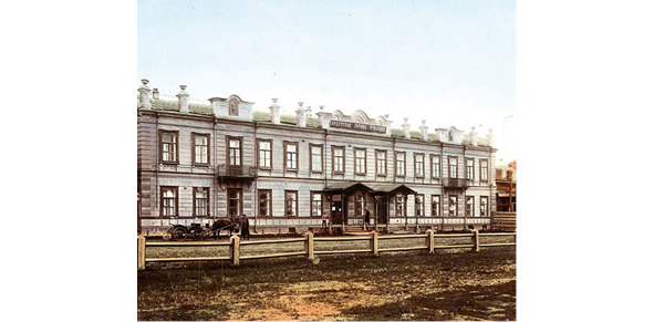 Мы возвращаемся к зданию Госбанка и поворачиваем направо в небольшой переулок, в прошлом называемый Банковским. Здесь до сих пор высятся стены жилого дома, построенного в 1938 г. для сотрудников Иркутского отделения Госбанка СССР на 40 квартир. На другой стороне находится еще одно творение советской эпохи – гостиница «Сибирь», построенная по проекту К. В. Миталя в 1933 г. (ул. Ленина, 18). Половина здания, выходившая на улицу Ленина, сгорела в сильнейшем пожаре 13 марта 1995 г.