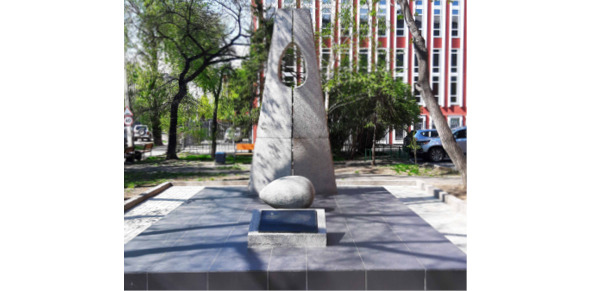 В конце улицы нас вновь встречает Польский костел, а мы поворачиваем налево и двигаемся в сторону главной городской площади. Справа мы видим небольшую стелу из розового гранита, которая была установлена в память о награждении Иркутской области Орденом Ленина 8 июня 1967 г. за успехи, достигнутые трудящимися области в хозяйственном и культурном строительстве, создании крупных промышленных и энергетических комплексов на реке Ангаре.
