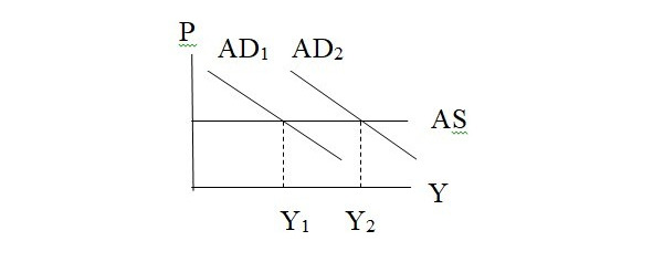 При осуществлении стратегии спроса деньги из государственного бюджета через государственные заказы, снижение налогов на граждан или снижения процентной ставки для кредитования приобретения потребительских товаров направляются потребителю, что стимулирует спрос, и, как следствие, возникает экономический рост. Подобные действия получили название бюджетной экспансии. На рис.3.2 отображено, как это выглядит кейнсианской модели.