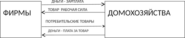 Простейшая модель экономического равновесия называется «модель круговых потоков» и представляет собой схематичное отображение встречных потоков денег и товара между производствами (фирмы) и домашними хозяйствами (рис.2.1).