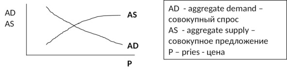 Экономическое равновесие – это ситуация, при которой совокупный спрос (АD) равен совокупному предложению (АS).