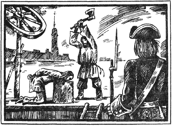 Царь Петр любил необычные зрелища и не мог оставаться равнодушным к столь небывалому проявлению погребального вкуса. Он обнял осужденную, поцеловал ее, поддержал своими руками, когда она, склонившись к нему на грудь, впала в обморочное состояние, и, передав палачу, спустился с помоста.