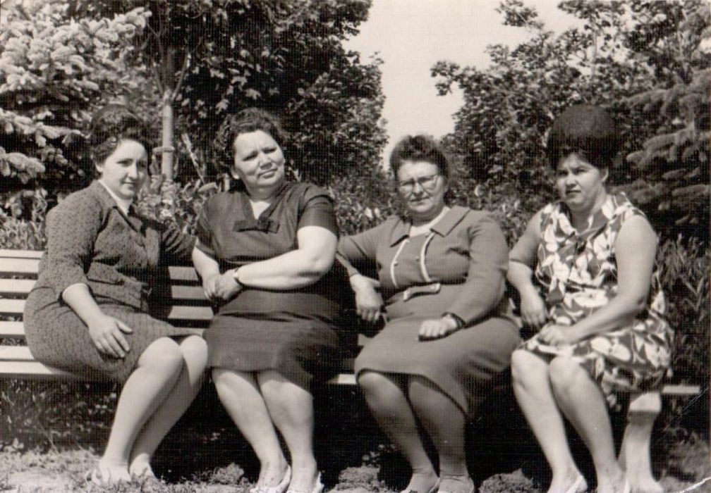 Учителя школы совхоза имени Максима Горького. С лева направо: Мальцева Вера Павловна,Ванацкая Юлия Иосифовна,Короткова Надежда Лаврентьевна и Иванова Евгения Андреевна