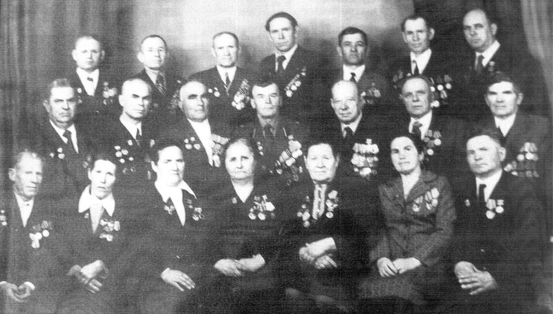 На снимке в первом ряду сидят Мякотко Иван Алексеевич, Щербакова Мария Тимофеевна. Рухляда-Матвиенко Валентина Ивановна, Донская – Шмурыгина Татьяна Никитична, Олиференко Анна Матвеевна. Лысенко Ефросинья Сергеевна и Дыбов Федор Фомич.