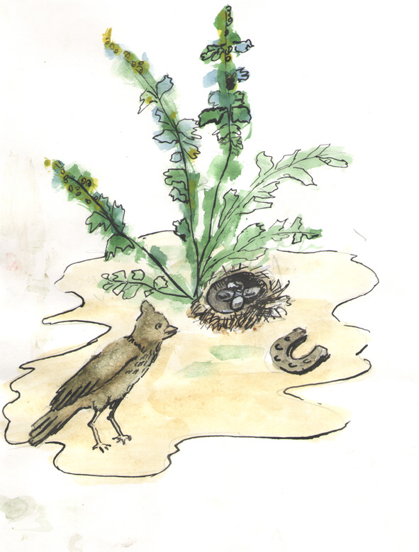 Когда жаворонок улетал за кормом, я подходил к самому гнёздышку, чтобы полюбоваться на птенчиков. Они были смешно покрыты пухом. Каждая пушинка похожа на тонюсенькую веточку. Голова на тоненькой шейке, точно одуванчик на стебельке, потом голенькая спинка, а за спинкой, как мячик, дутая гузка. Гузка тоже вся в ветвистом пушку – второй одуванчик. В гнезде птенчики прижимались друг к другу, и тогда все одуванчики сливались в дымчатую занавесочку. И мне каждый раз казалось, что оставляя птенчиков одних, жаворонок задёргивает гнездышко этой пуховой шторочкой.