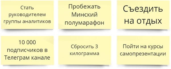Хорошо, значит, моей главной целью будет «стать руководителем группы аналитиков», а уже только потом «пробежать Минский полумарафон».