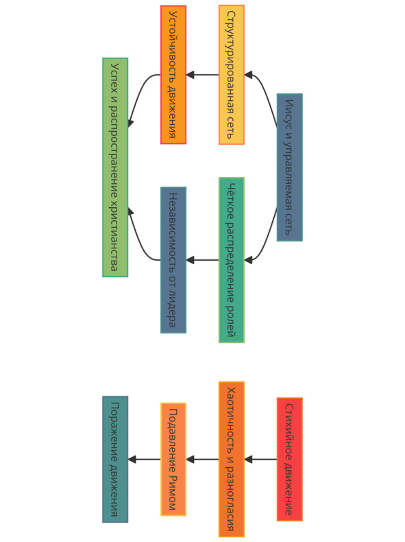 Таким образом, Иисус осознавал, что стихийные движения, даже если они обладают мощной поддержкой, неизбежно сталкиваются с внутренними конфликтами, утратой фокуса и жёстким подавлением со стороны власти. В отличие от этого, управляемая сеть, состоящая из подготовленных носителей идеи, могла существовать независимо от внешних угроз. Благодаря этому его движение не только пережило самого Иисуса, но и продолжало расти, превращаясь из локального сообщества в глобальную систему, которая в конечном итоге изменила ход истории.