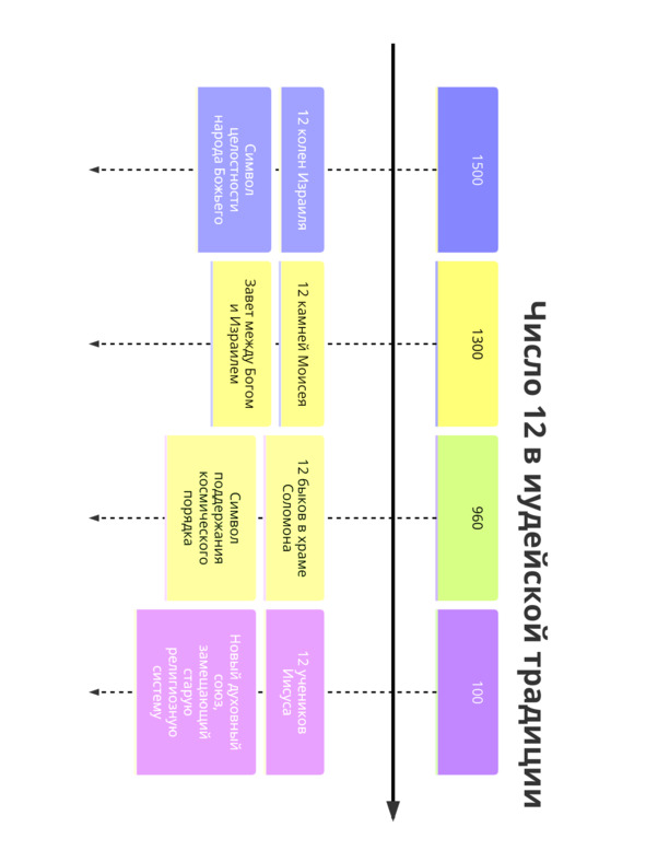 В древнееврейской традиции число 12 было неразрывно связано с фундаментальными представлениями о народе Израиля и его связи с Богом. Одним из главных примеров является концепция 12 колен Израилевых, происходящих от 12 сыновей Иакова. Эта структура не только отражала родовую и территориальную организацию общества, но и имела сакральное значение. Каждое колено воспринималось как часть единого целого, и нарушение этой системы считалось угрозой для божественного порядка. В Бытии (49:28) упоминается, что каждое из колен имело свою уникальную роль, но вместе они составляли единый народ Божий. Таким образом, когда Иисус формировал своё движение, выбор 12 учеников мог символизировать восстановление духовного Израиля – не физического царства, а нового религиозного союза, объединённого не по крови, а по вере.