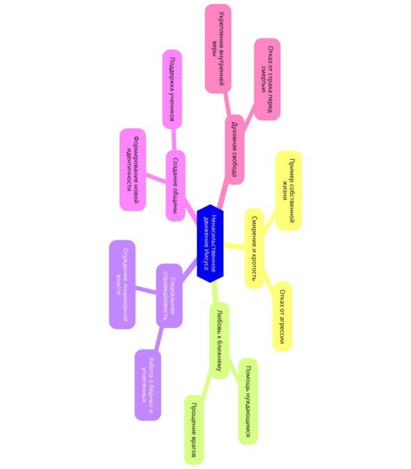 Стратегия Иисуса базировалась на принципе ненасильственного сопротивления. Он не создавал армию, не призывал к восстанию и не давал повода власти расправиться с его последователями, как это случилось с другими революционерами. Исторические исследования показывают, что ненасильственные формы сопротивления, в отличие от вооружённых восстаний, сложнее подавить. Политолог Джин Шарп в своём труде «От диктатуры к демократии» доказал, что мирные движения имеют больше шансов на выживание, потому что они не дают власти повода для немедленного уничтожения. Ганди в XX веке применял аналогичный подход, понимая, что прямое столкновение с британскими колониальными войсками обречено на поражение, но ненасильственное сопротивление подрывает саму легитимность власти. Похожую стратегию использовал и Мартин Лютер Кинг, добиваясь гражданских прав для афроамериканцев в США.