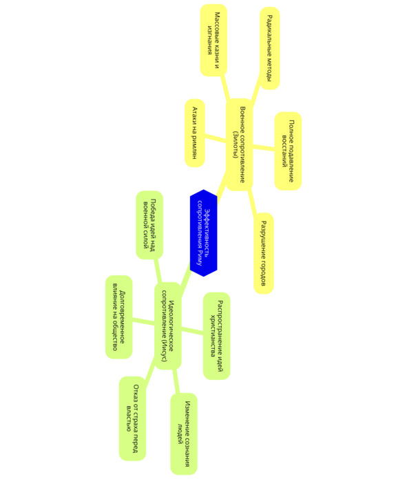 Римская стратегия уничтожения храмов и городов действительно сломила организованное сопротивление, но не смогла уничтожить идеологическое влияние побеждённых. Напротив, эта политика привела к долгосрочным изменениям, которые в конечном итоге подорвали власть самой империи. Спустя три столетия после разрушения Иерусалима христианство, выросшее на руинах римских репрессий, стало доминирующей религией империи, а Рим сам оказался вынужден подчиниться идеологии, которую пытался искоренить. Это доказывает, что уничтожение материальных структур не всегда ведёт к исчезновению идеи, а иногда, наоборот, способствует её трансформации и распространению.