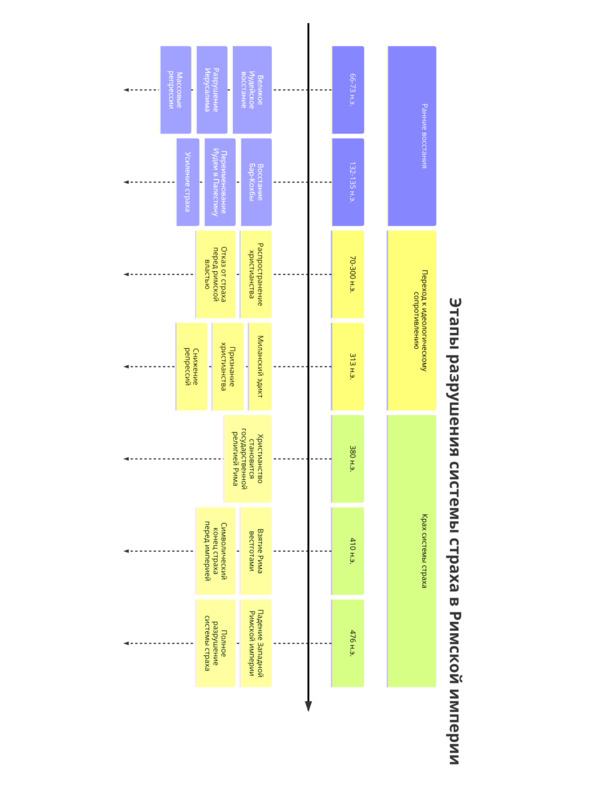 Эта закономерность проявилась и в римской истории. В течение столетий империя держала провинции под контролем за счёт запугивания, но чем более жёсткими становились репрессии, тем больше росло число тех, кто переставал бояться. Великое Иудейское восстание в 66—73 годах н. э. не было бы таким масштабным, если бы еврейское население не пришло к выводу, что терпеть римскую власть уже невозможно. Страх ослабел, и началась война, которая привела к разрушению Храма и массовому исходу евреев из региона.