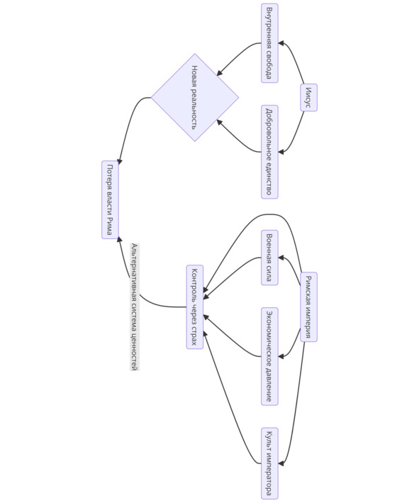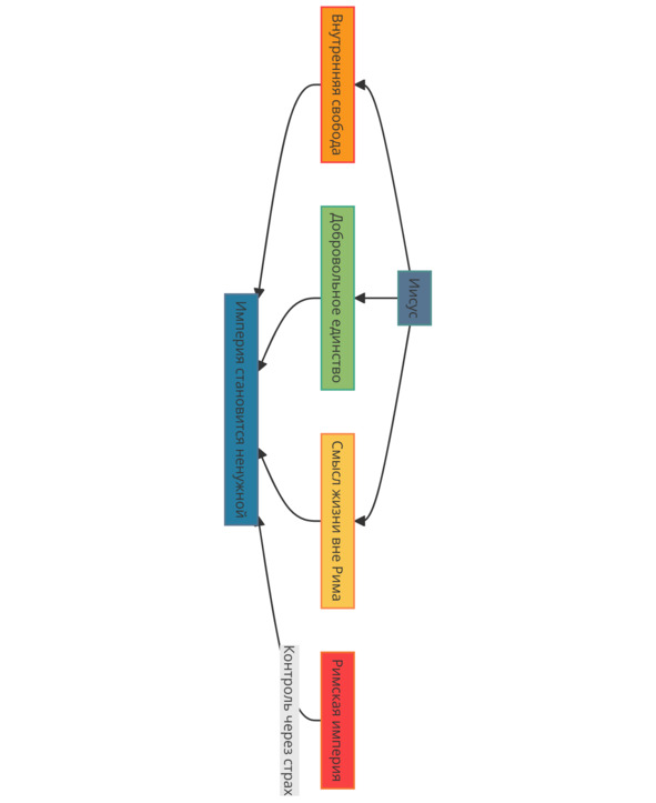 Рим мог уничтожить города, подавить восстания, распинать мятежников, но он не мог бороться с идеями, которые давали людям смысл. Иисус предложил концепцию, которая делала императорскую власть бессмысленной. Если человек не боится смерти, если он верит, что его жизнь принадлежит не Кесарю, а Богу, он становится неуязвимым для власти.