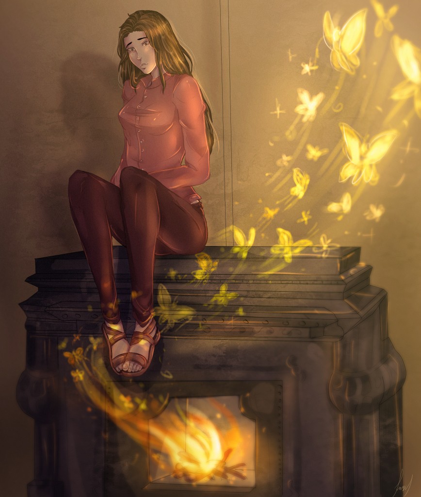– … А я люблю, – уже ни к кому не обращаясь шепнула девушка. И тут из потухшего за ночь камина, на который она запрыгнула, вылетела стая огненных бабочек и, взлетев под потолок, осыпалась вниз лепестками и исчезла, не касаясь ковра.