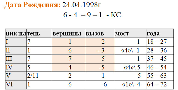 Здесь содержится полная теория и формулы расчетов построения и анализа Карты Жизни по Дате Рождения, включая методы и алгоритмы расчета ключевых чисел: Вершина, Вызов, Тень, Мост, а также составление таблиц девятилетних циклов.