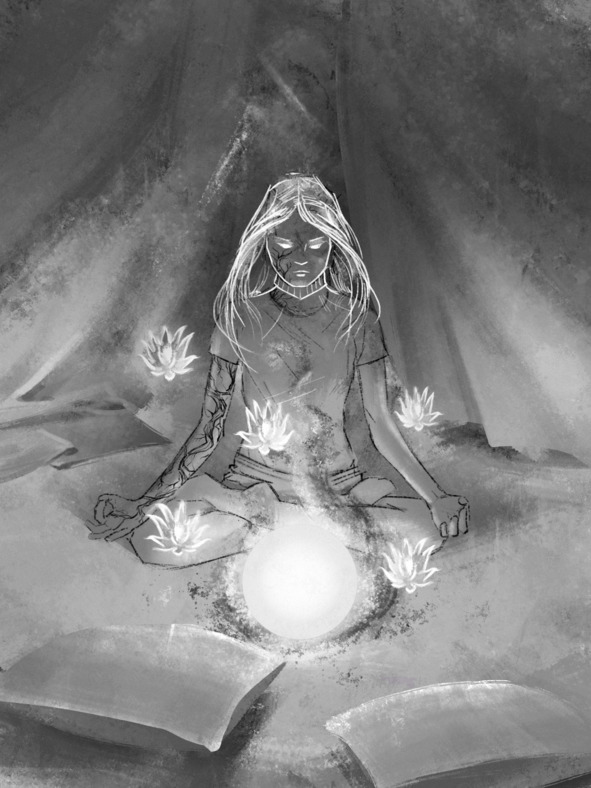 Сквозь Марину, словно видение, стал проглядывать иной образ, такой же заворожённый, представший картиной: белые волосы, отливающие серебром, глаза, что напоминали луну, и чёрная метка на руке. Энергия плавно устремилась к ней и коснулась её плеча, приветствуя. Образ на секунду проявился чуть ярче, тем самым отвечая.