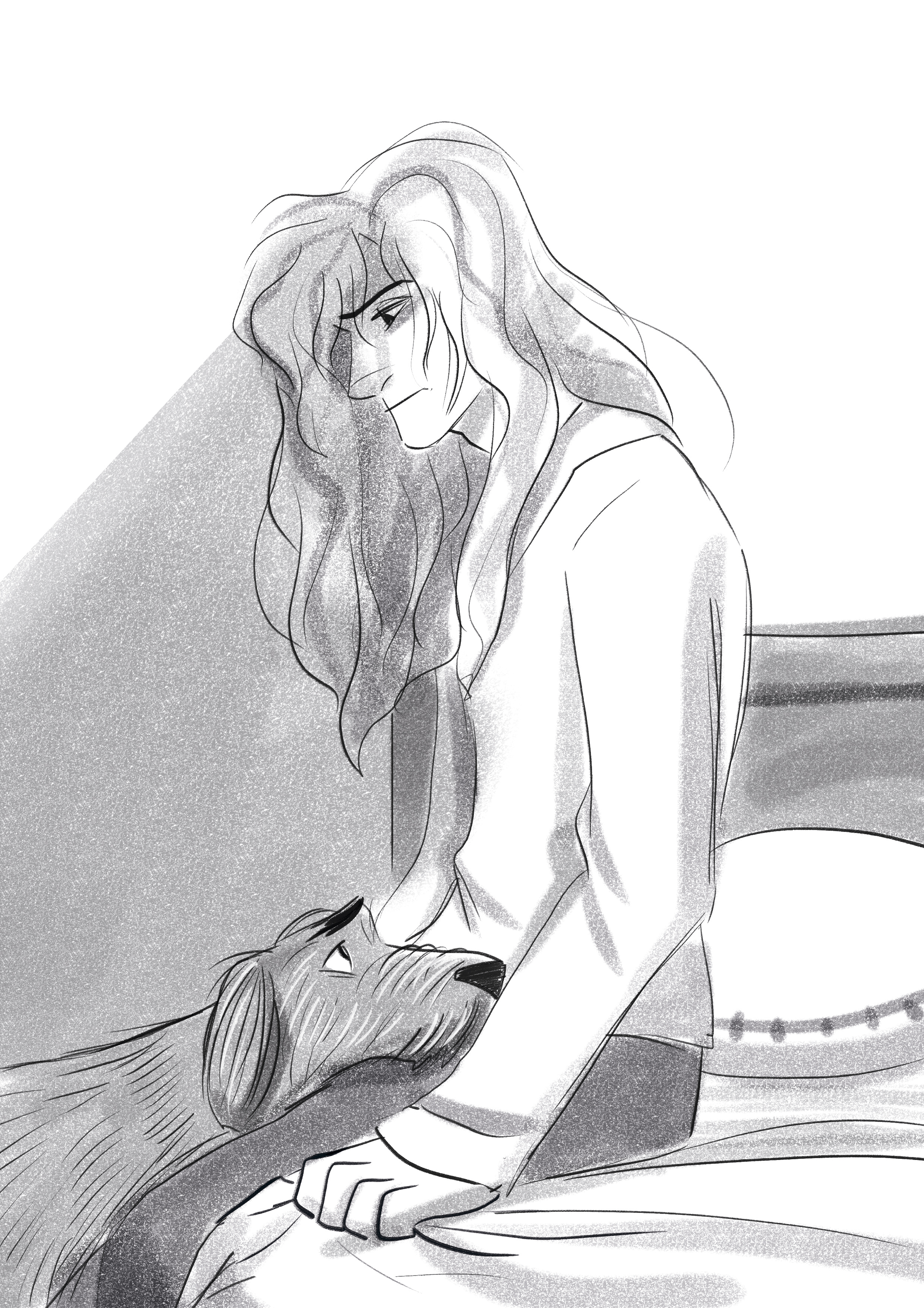 Большой серый пес породы дирхаунд тоже был в глубокой печали, но оживился, когда заметил новые действия хозяина впервые за долгое время.
