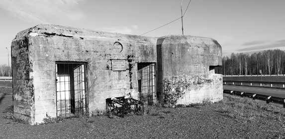 А первое зримое соприкосновение с недавней историей края происходит уже на 27-м километре трассы – на развязке можно увидеть два приземистых бетонных пулеметных ДОТа – аббревиатура расшифровывается как «долговременная огневая точка». Они были некогда серьезными оборонительными сооружениями, а сейчас являются частью мемориала «Карельский укрепрайон», или сокращенно КаУР. Эти ДОТы и множество других (около сотни пулеметных и двадцать артиллерийских) были возведены в 1928–1939 годах вдоль границы с Финляндией по всему Карельскому перешейку. Тогда она проходила совсем рядом с Ленинградом, так, как на схеме: от Сестрорецка через Агалатово, Елизаветинку, Лемболово и Путкелово до деревни Нижние Никулясы.