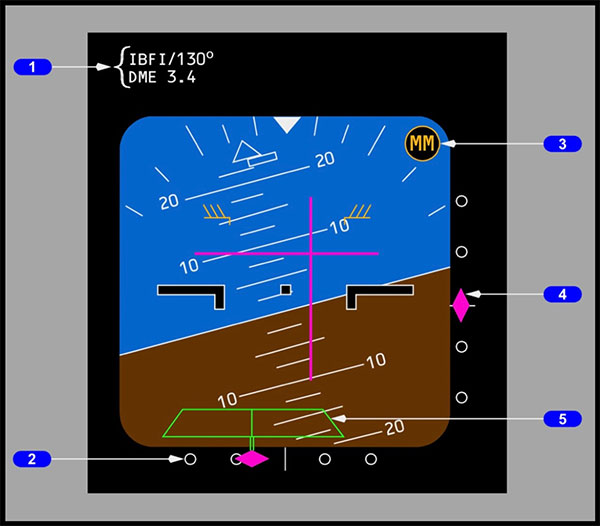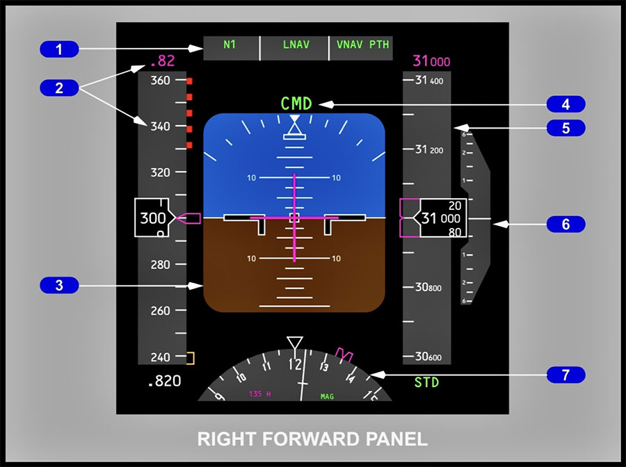 ✓ Элемент 5 – дисплей PFD второго пилота.