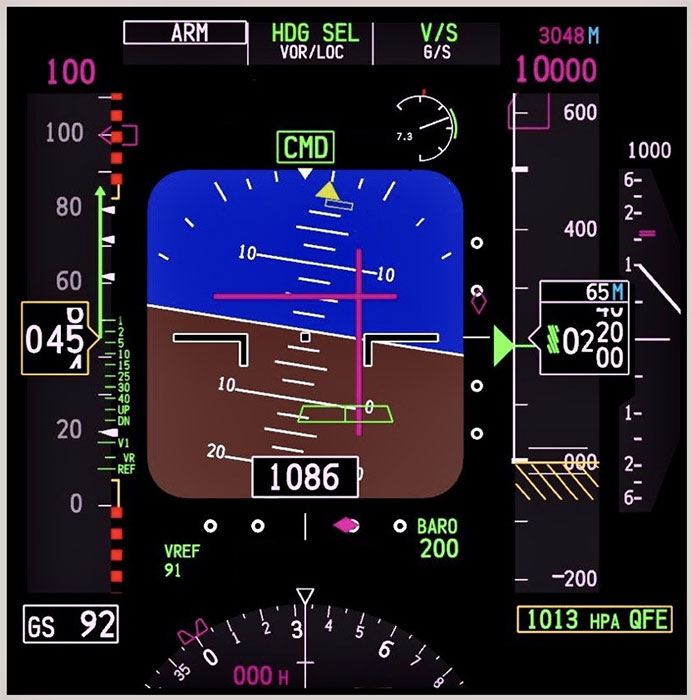 PFD (Primary Flight Display) / [прАймэри флАйт дисплЭй] / {основной пилотажный дисплей} – главный дисплей для пилота.