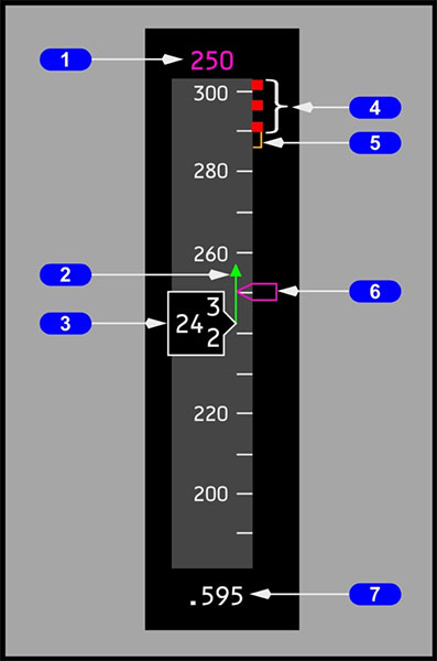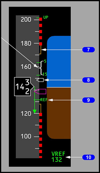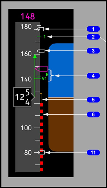 ✓ Элемент 4 – метки контрольных скоростей взлета.