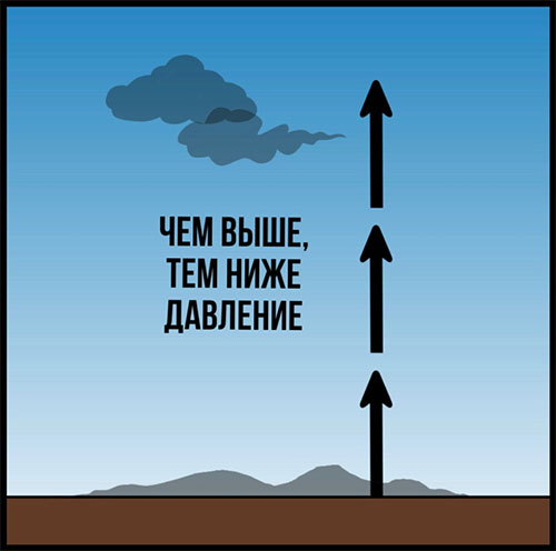 С высотой атмосферное давление падает. Изменение давления можно привязать к высоте. Это реализовано в баровысотомере. Исходя из изменения давления, он считает высоту.