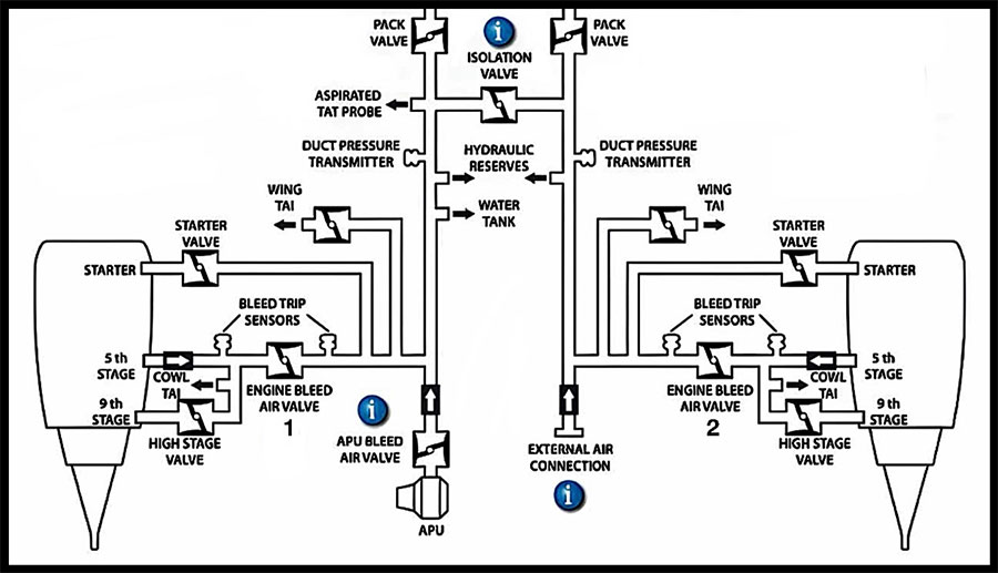 1.) Воздух из двигателя отбирается от 5-й ступени (5th STAGE) низкого давления.