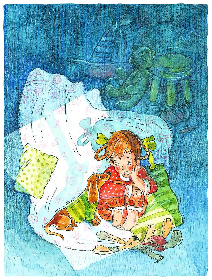 Хвостик натянула на голову одеяло и попыталась заснуть. Крепко зажмурилась и свернулась калачиком, как учил её брат. Но сна всё не было. Тогда она решила не спать и перебралась на пол, чтобы пошептаться с Борькой. Такса была совсем не против и весело угнездилась рядом.
