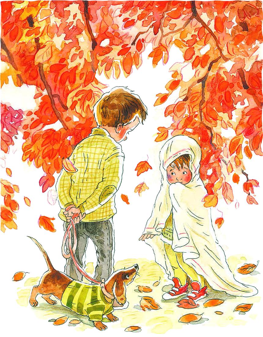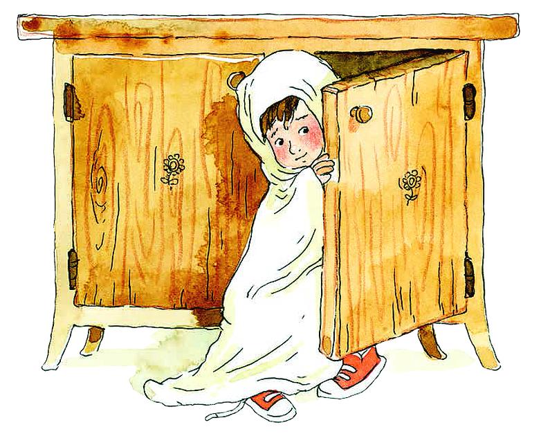 Когда Вовка увидел Соню, он растерялся. Сестра стояла в простынке. С синяком под глазом, растопырив руки в стороны, изображала привидение. Вовка обиженно развернулся и тихонько пошёл домой. Тогда Соня догнала его и обняла брата.