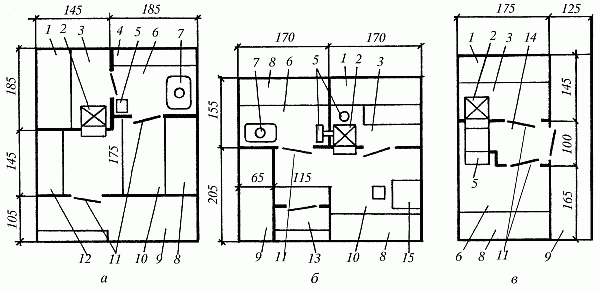 На рис. 2 представлены планы традиционных бань, состоящих из парной, моечной и раздевалки.