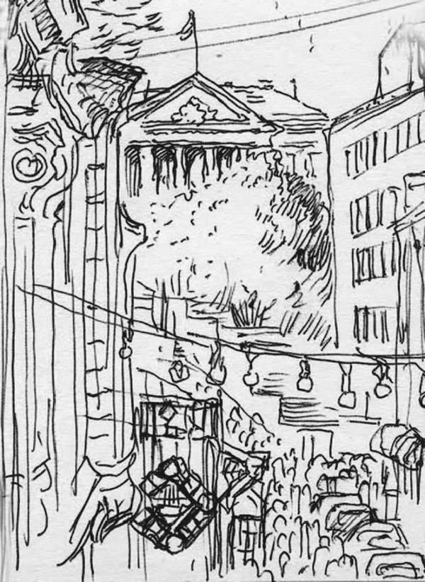 Боже мой, как же глазам теперь обойтись без родных и привычных картин? Увидели толстую чугунную балку, на которой держалась наша крыша, она валялась покорёженная… Гена стал делать наброски. Я всё смотрела на развалины, они завораживали, будто… рушилась память о безвозвратном прошлом. На бетонном основании забора по-прежнему лежали подпорченные книги «Спасти Италию!», которые положили сотрудницы нашего книжного магазина с первого этажа ещё неделю назад…