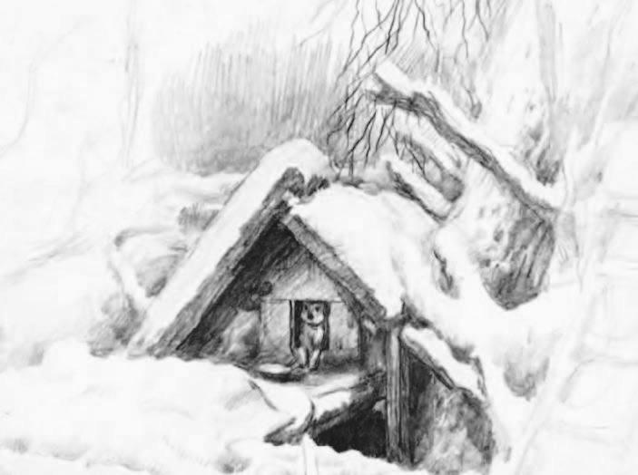 Подходим к мастерской – а тут что-то непонятное. Васька сидит, орёт на заборе. Открываем парадную дверь, заходим, включаем свет – на полу раскидан лук, картошка и проч. Марта орудует в доме (а должна быть во дворе). Дверь в зал открыта, из зала дверь в пристройку тоже настежь, и дальше распахнута дверь в наш двор – всё настежь… Состояние жуткое, холодок по коже… Кто-то залез… Гена мне: не ходи, может, они ещё тут… Сам первый прошёл по комнатам, там всё нормально. Потом вышли во двор. Темно. Следы на белом снегу привели к дальнему забору и большому дереву за ним. Всё стало ясно: «воры» забрались по дереву на край крыши пристройки, спрыгнули во дворик (не побоялись лая Марты), разрезали сетку, выбили дверь, прошли через пристройку в зал, но дальше увидели обжитое место и идти побоялись…