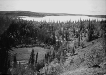 Die Landschaft nördlich des Großen Sklavensees ist herrlich. Eine felsige Gegend, von Moos überzogen, mit kargen Fichten- und Birkenwäldern bewachsen.