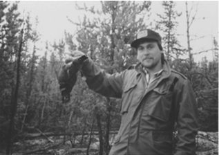 „Meine Mutter“, begann er, „hat mir viel über alte Zeiten erzählt, wie sie es selbst von ihren Eltern wusste.“ Bereitwillig gibt er Antwort auf viele meiner Fragen. Doch während wir so reden, verfinstert sich sein Ausdruck zunehmend, bis ihm letztlich die traurig klingende Stimme versagt. Er schweigt lange, stiert unbeweglich in das Glas. Fährt dann mit ruhigem Ton fort: “Der Vater meines Großvaters, selbst noch ein Kind, lebte mit seinen Eltern in einem Hüttencamp vieler Familien in einer Gegend am Snare River, wo die Jagdgründe gutes Leben boten. Durch Tausch von Biberfellen bekamen sie von Weißen manch nützliches Gerät. Man hat glücklich und zufrieden gelebt. Bis eines Tages, spät im Indianersommer, der erste Schnee war bereits gefallen, Vater und Sohn im Morgengrauen das Camp verlassen, um nach ihren Biberfallen zu sehen. Unterwegs finden sie fremde Fußspuren, die geradewegs zu einer der aufgestellten Traps führten. Näherkommend, ist jemand kniend beschäftigt, einen gefangenen Biber zu töten. Der Vater hieß den Jungen zurückbleiben und geht auf den Fremden zu. Nach kurzer Auseinandersetzung kommt es zu einem Handgemenge, das die Streitenden in Schnee wälzend fortführen, bis endlich der Dieb regungslos liegenblieb. Der Vater nimmt den Biber, um zu seinem verängstigten, hinter einem Baum wartenden Kind zu gehen. Knapp dort angelangt, donnert ein Schuss durch den Wald. Im selben Augenblick sinkt der Vater zu Boden. Ohne zu überlegen nimmt der Junge die Flinte, die ihm der Vater zur Obhut zurückließ, legt im Schutze des Baumes an und tötet mit dem ersten Schuss den gemeinen Mörder. Dann schleifte der Sohn den sterbenden Vater auf weitem Weg nach Hause.“