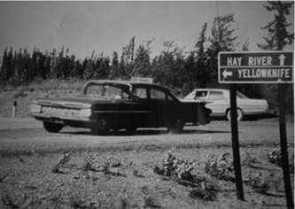 Zufällig hielt zur gleichen Zeit ein Auto vor der Hütte der Alten. Der Fahrer wollte gleichfalls in Richtung Hay River und nahm uns gerne mit. Während der Fahrt erzählte dieser, deutsche Vorfahren zu haben und spielte aus einer Cassette heimatliche Volksmusik, wozu wir selbstverständlich kräftig mittönten. Beste Stimmung.