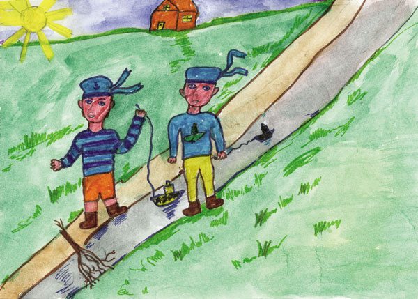 Вот – дорога, вот – канава,А в канаве – корабли.Слава мне и Славке слава —Открывателям Земли!Мы со Славкой – капитаны.Открываем мир вдвоём;Все моря и океаныВместе с ним переплывём.Кто помог бы нам корягуОт причала отпихнуть —И «Авроре», и «Варягу»Загораживают путь.Собирались мы разведатьЧужедальние края.Но – меня зовут обедать,А потом – и спать пора.
