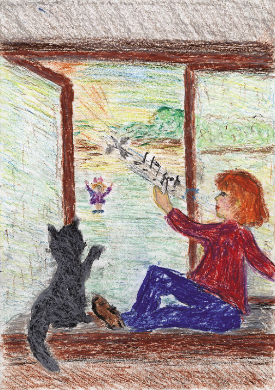 Новый дом, а в нём – окошко,А в окошке том сидитМожет – кот, а может – кошкаИ на улицу глядит.А в окошке, с кошкой рядом.Словно якорь на борту.Человек с весёлым взглядом,С новой песенкой во рту.Хочет кот, а может – кошкаЭту песенку понять.Но, как в старое лукошко.Песня – мимо, не поймать.Из окошка на дорожкуПесня выпорхнула в свет.Чья-то детская ладошкаМашет песенке вослед.