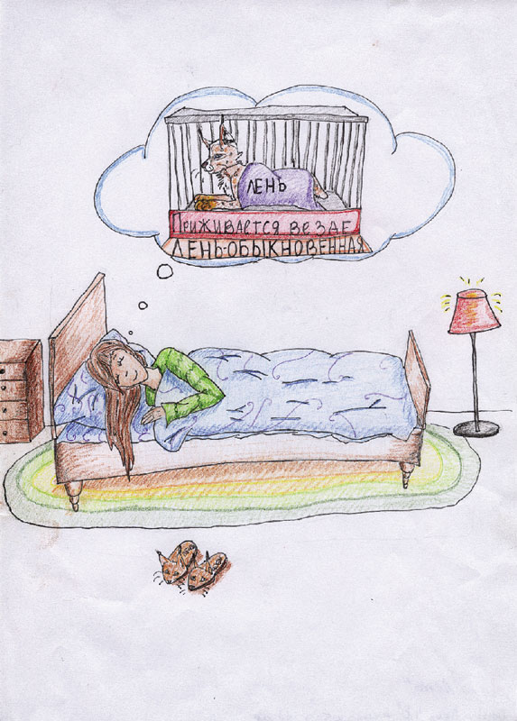 Наступает новый день,А вставать не хочется:Раньше всех проснулась лень,У кровати топчетсяЕле слышно, словно рысьПрячется в засаде;Я замахиваюсь: – Брысь! —Подползает сзади.Лапу на щеку кладёт —Ах, какая лапка!..Жду, когда же лень уйдёт,И мечтаю сладко…Нет! Устрою лучше яНа неё засадуИ отдам к исходу дняЗверя – Зоосаду.Этой лени я хитрей:Притворяясь спящей,Хвать за шкирку! – кто бодрейВ схватке настоящей?Клочья шерсти, перья, пух.Рваные подушки…Проявляют твёрдый духНеразлей-подружки!Проступает новый деньСолнцем на фасаде,А моя гуляет леньВ клетке – в Зоосаде.И над клеткой, на гвоздеНадпись непременная:«Приживается вездеЛЕНЬ ОБЫКНОВЕННАЯ».