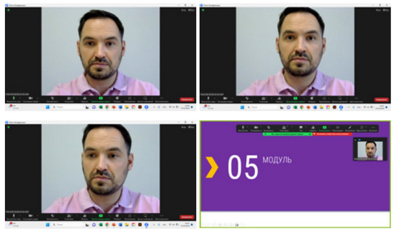 ЗаданиеВключите Zoom конференцию на компьютере и зайдите также с телефона. Смотрите на разные точки экрана, а телефоном делайте скрины экрана. Затем посмотрите и определите, где ваш взгляд был направлен на слушателя, а где – в сторону. Подумайте, где расположить дополнительную камеру.