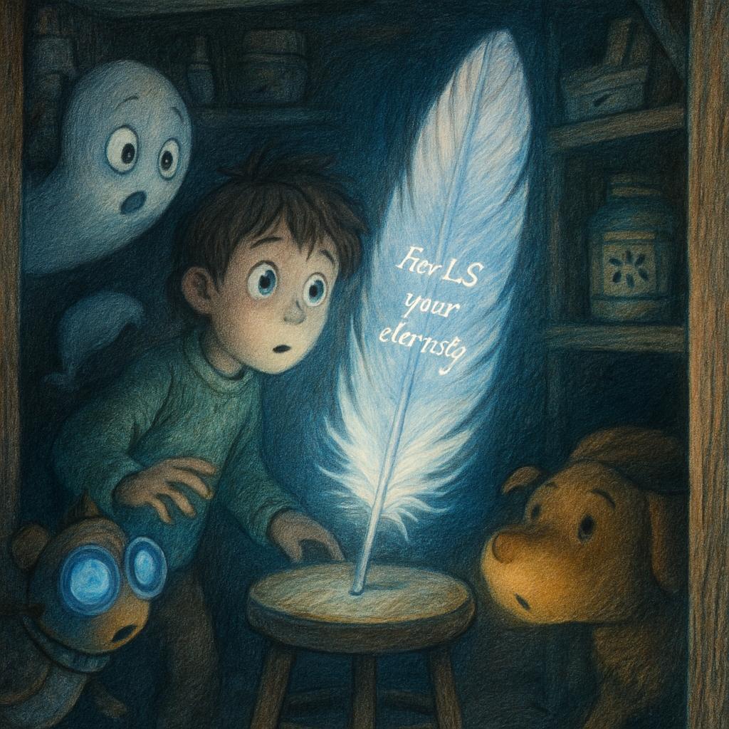Белое перо, холодное и загадочное, как осколок чужой луны, покоилось на столе в мастерской Гизмо. Надпись «Для Л.С. Твоя вечность.» светилась мягким, немигающим светом, отбрасывая дрожащие серебристые тени на банки с «Радужной Пылью» и запутанные чертежи. Воздух был густ от запаха паяльника и лимонного освежителя, которым Ворчун безуспешно пытался заглушить аромат своего недавнего «купания».