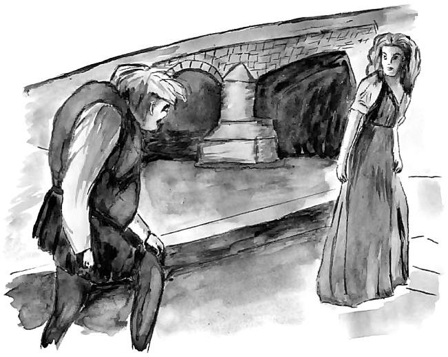 На лестнице послышались шаги и тяжелое, хриплое дыхание. Миг – и на колокольне показалась безобразная фигура горбуна. Боязливо оглядываясь, горбун быстро направился к большому колоколу. Нагнувшись, он стал шарить там своей лапой…