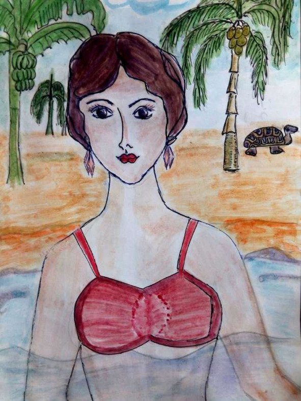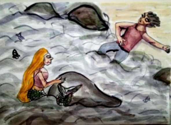 Она появилась со стороны скал и, спрятавшись за ними, стала наблюдать за отдыхающими. Белый горячий песок обжигал хвост. Жаркое солнце палило нещадно и ей без привычки было трудно дышать. Но она, как завороженная, наблюдала за людьми. Вот они ходят на двух ногах, вот бегают по пляжу, плавают, болтая ногами, резвятся.