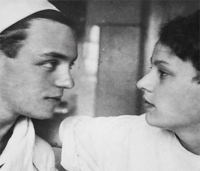 Нашла фотографию. Наверное 41-й год. Мама с папой уходят на фронт, крупный план, оба уже в белых халатах, оба в профиль лицом друг к другу, глаза в глаза. Друзья мне сделали из неё фотографию метра два на полтора. Висит дома.