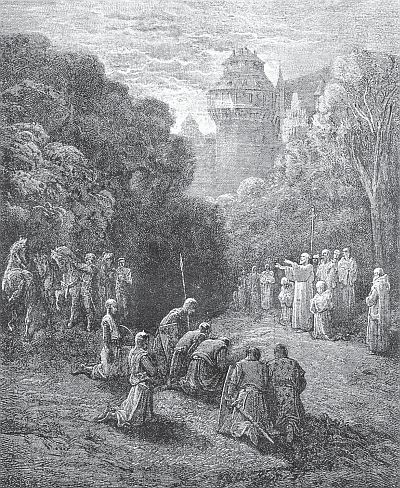 Следует, однако, сказать, что такой бурный рост численности жителей был для Европы не только благом. Ограниченная площадь пахотных земель, к тому же искусственно сдерживаемая жестокими законами об охоте, плодила все возраставшую армию крестьян, лишенных земли, а следовательно, и средств к существованию. И вот так, на фоне общего роста благосостояния (весьма, правда, относительного) появляются сотни тысяч, если не миллионы людей, либо прозябающих на положении бедных родственников, либо вынужденных идти в пожизненную кабалу к феодалу, либо просто уходящих нищенствовать по деревням и у ворот монастырей. В сами монастыри вход им был заказан, ибо поступление в монахи требовало немалого вступительного взноса. В конце концов, эта армия голодных оборванцев начала пугать даже всемогущую католическую церковь. Чтобы не допустить социального взрыва, угрожавшего и спокойной монастырской жизни, и замкам феодалов, нужно было предпринимать какие-то кардинальные действия. Именно это и стало в XI веке главной задачей католической церкви, по самой своей природе занимающей положение между народом и властью.