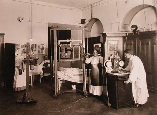Врачи и медицинские сестры в рентгеновском кабинете госпиталя.