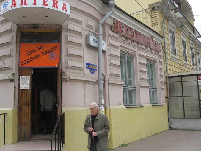 Отец на фоне аптеки, помещение которой принадлежало до революции семье Ципельзон
