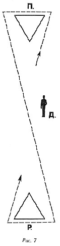 Треугольники могут находиться сначала на расстоянии двадцати пяти метров один от другого, затем на пятьдесят метров и, наконец, на сто, если Вы желаете дать Фраму поиск несколько более широкий, что даст возможность извлечь всю выгоду из собаки большого чутья.