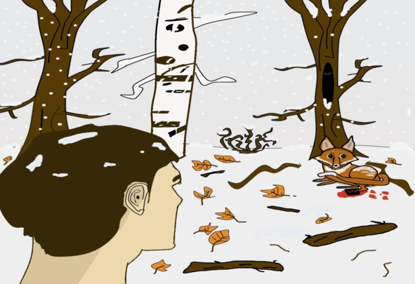 После дождя, очевидно, остаётся много луж. И в одной из луж ты замечаешь опавшие листья, а подле лужи стоит некогда полное организмами с хлоропластами дерево. Но интересность этой картины состоит в том, что пустое дерево не имеет более своей красоты, которая теперь находится лишь в отражении былого величия. Однако однажды это дерево вновь вернет свои листья, и вновь будет жить полной красками жизнью.