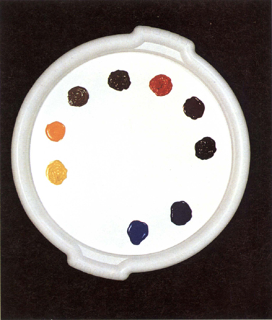 When beginners mix colours in a conventional palette, they usually use huge amounts of water and touch small dabs of colour into it. Not only is this wasteful, but the mixture is bound to look weak and watery. The great advantage of using a large round palette is the ample mixing area that is left in the centre. However, because there is no restraining lip between this area and the colours, you need to use less water. By pulling colours across the centre of the palette in bands – overlapping in places, keeping them separate in others – you have a choice of colours plus extra ones where they blend together and you avoid the inevitability of having a central pool of watery colour. This method also discourages you from making weak mixtures and helps you avoid insipid or muddy colours. It allows you to use stronger paint mixes, giving you more control.