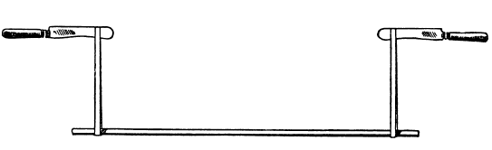 Достаньте тонкую сухую палочку длиной примерно 1 метр. Склейте две петли из полосок папиросной бумаги и попросите двух товарищей подержать по столовому ножу лезвиями вверх, так чтобы на них можно было повесить бумажные петли. В эти петли вложите концы палки (рис. 3).